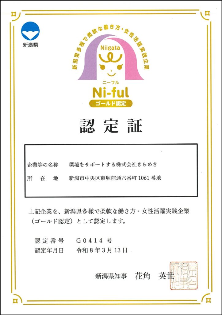 新潟県多様で柔軟な働き方・女性活躍実践企業 Ni-ful(ニーフル)認定
